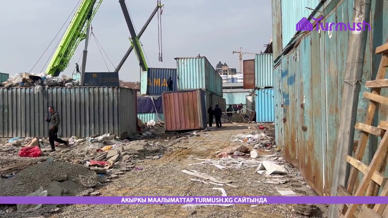 Ош шаарындагы «Келечек» базары көчүрүлгөндөн кийин базардын аймагындагы бош контейнерлер алынууда.