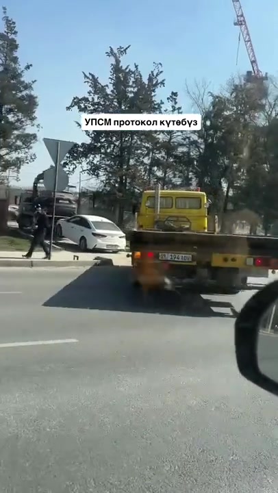 Эвакуатор пересек двойную сплошную и повернул налево