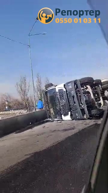 На мосту на Токтоналиева перевернулся грузовик. Видео