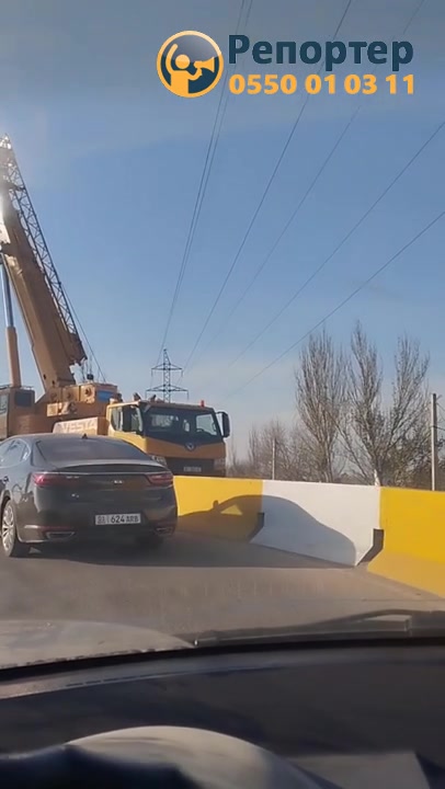 На мосту на Токтоналиева убирают перевернувшийся грузовик. Видео