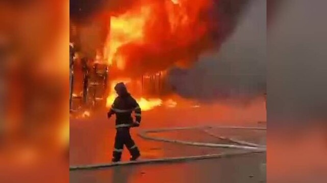 По предварительным данным МЧС, площадь пожара составляет 500 кв.м. Пострадавших нет.