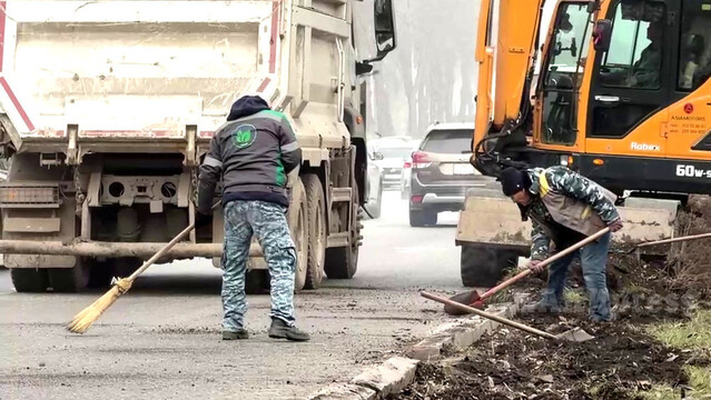 а участке проспекта Айтматова от улицы Ахунбаева до проспекта Жибек Жолу вдоль дороги выкапывают кустарники.