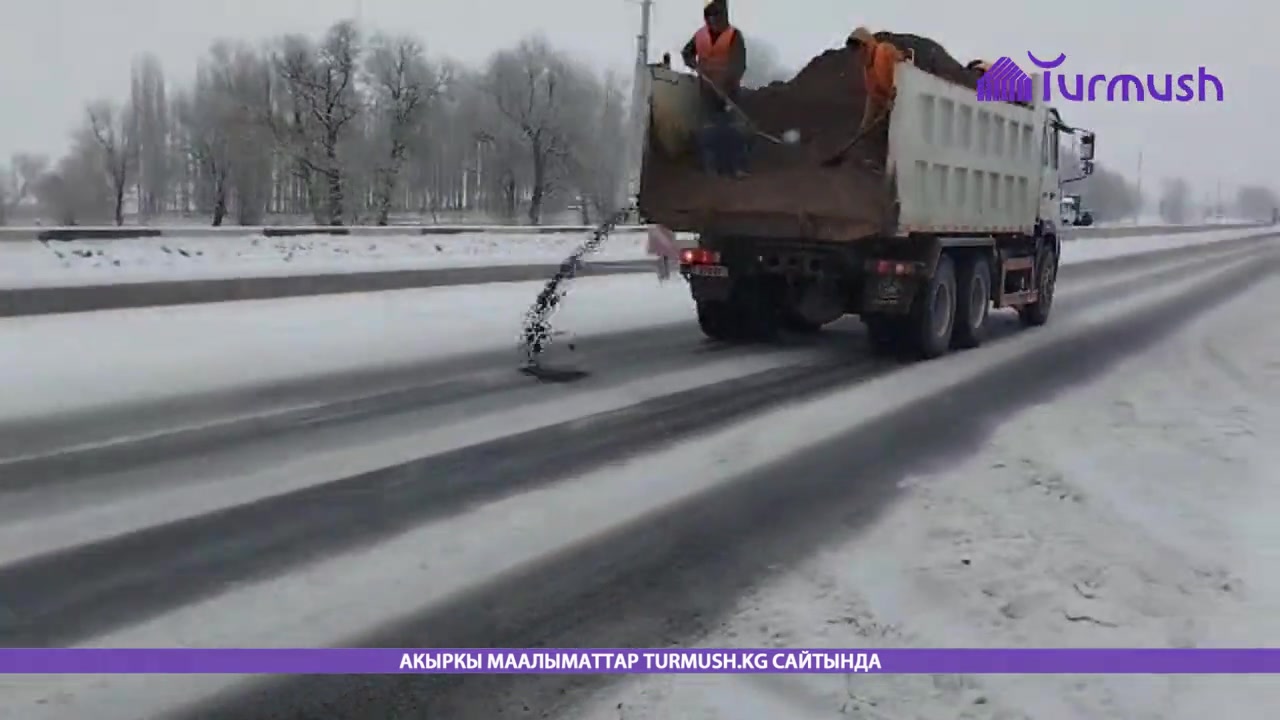 На трассе Бишкек—Ош усилили очистку от снега и посыпку смеси